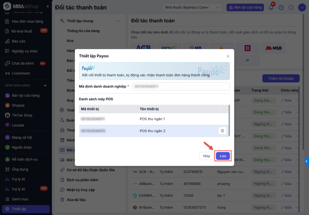 Bài viết hướng dẫn cách kết nối và sử dụng đối tác thanh toán Payoo trên phần mềm, bao gồm thiết lập máy POS Payoo và quy trình thanh toán tại cửa hàng.