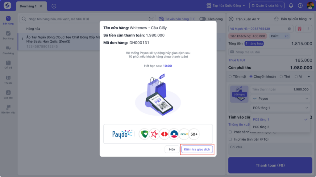 Nhấn Kiểm tra giao dịch để theo dõi trạng thái thanh toán của khách.