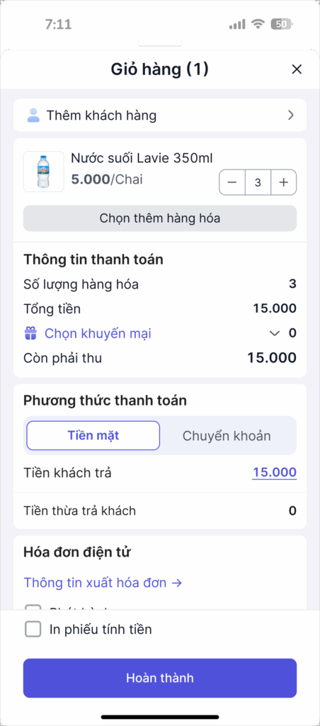 - Tại màn hình lên đơn, nhấn Chọn khuyến mại