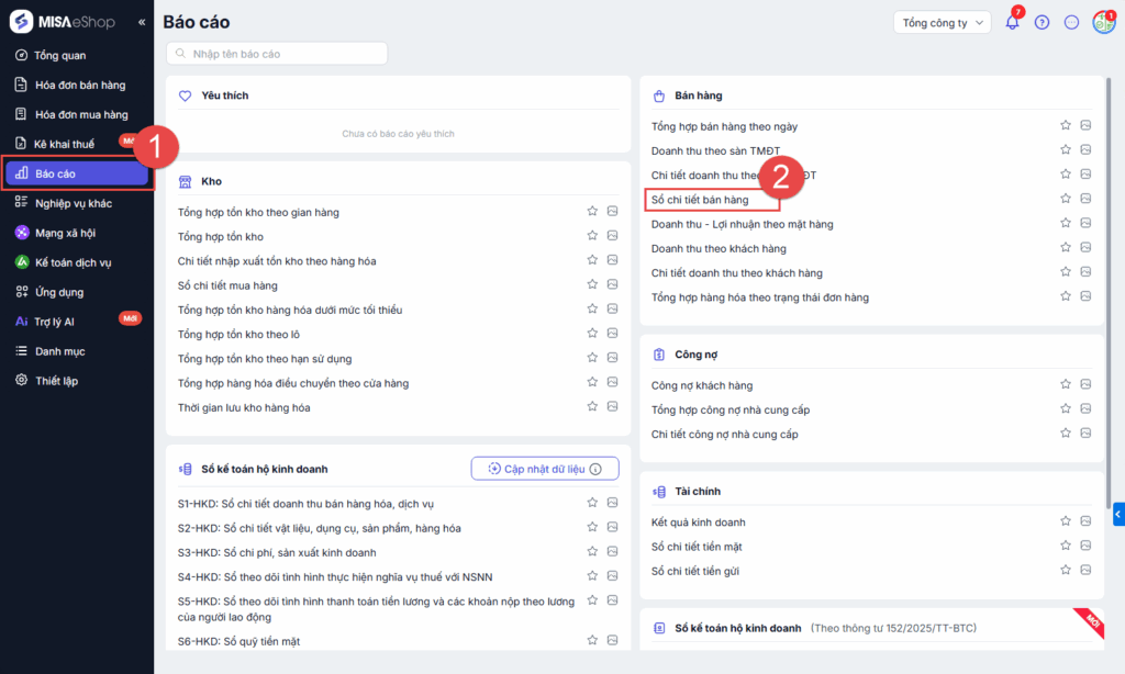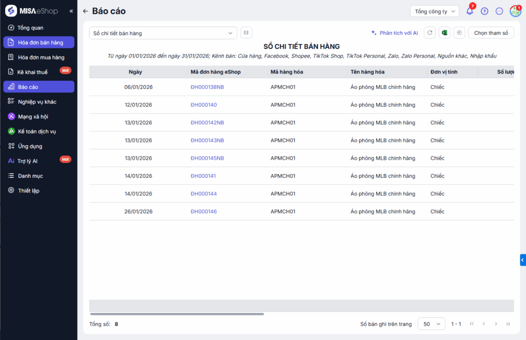 [Báo cáo chuỗi] Sổ chi tiết bán hàng
