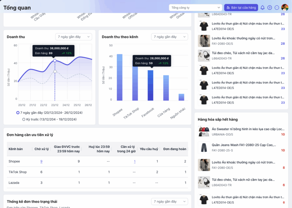 – Đơn hàng cần ưu tiên xử lý: Hệ thống hiển thị danh sách các đơn hàng cần được chú ý dựa trên trạng thái của chúng.