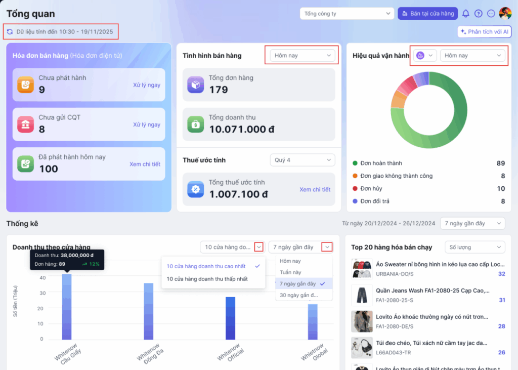 - Tình hình phát hành hóa đơn của toàn chuỗi