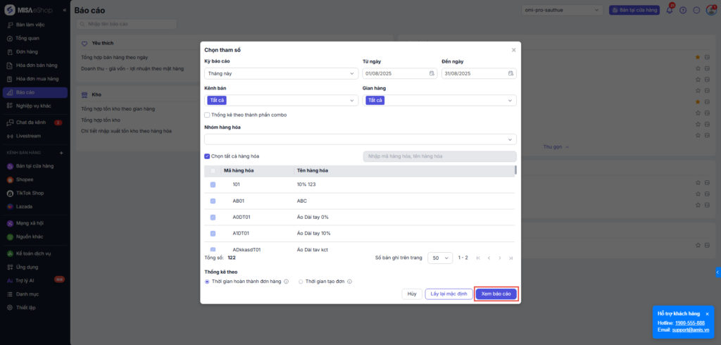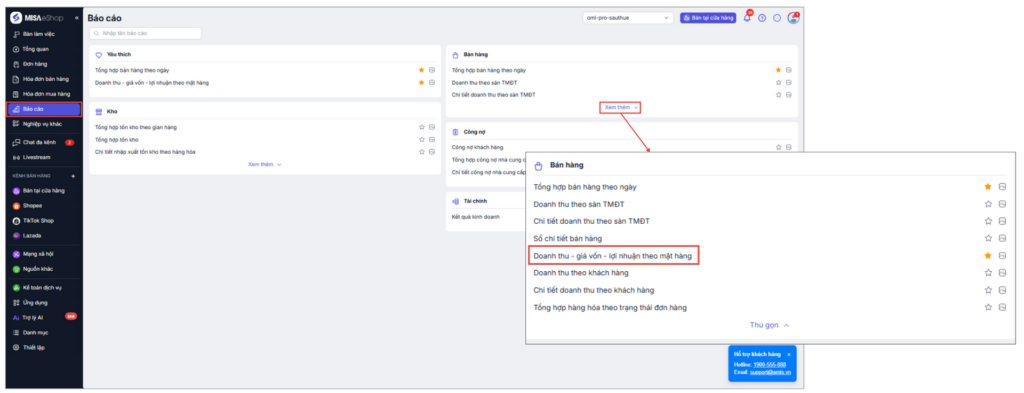 Bước 3: Xem báo cáo và phân tích chi tiết từng mặt hàng