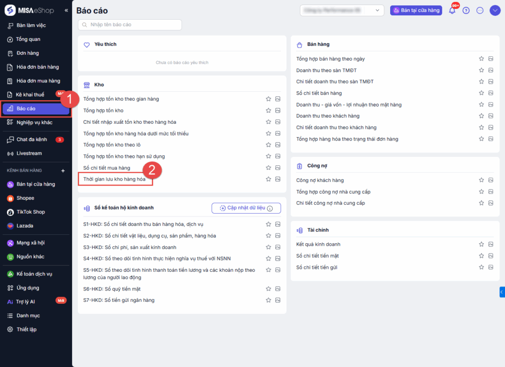 Bài viết hướng dẫn cách xem báo cáo thời gian lưu kho hàng hóa trên phần mềm MISA eShop. Nội dung bao gồm các bước truy cập, thiết lập điều kiện lọc và xem kết quả báo cáo.