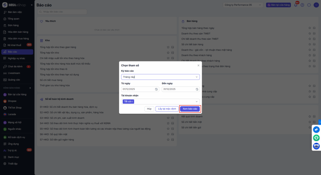 Bước 2: Chọn kỳ báo cáo → nhấn Xem báo cáo