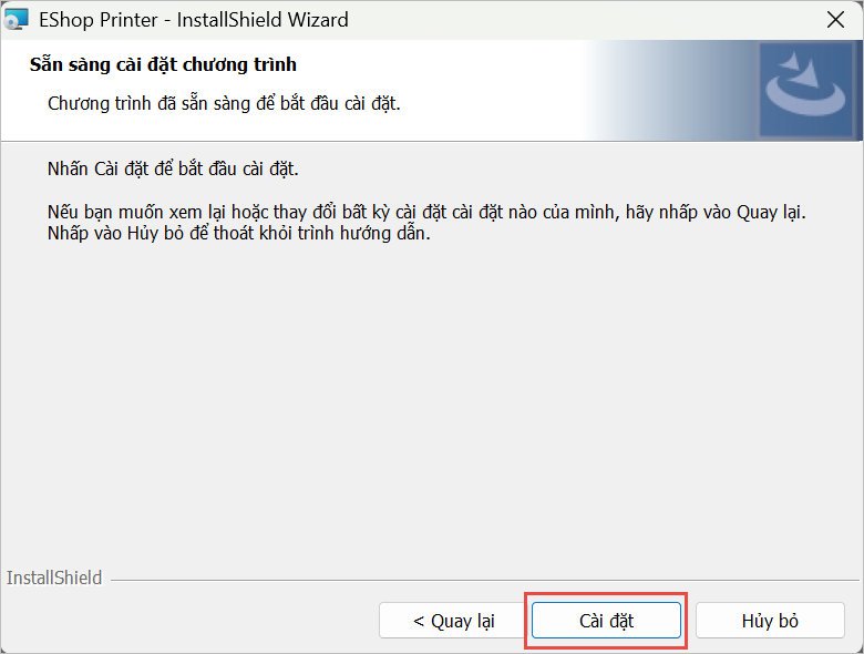 Bước 4: Nhấn Cài đặt và chờ quá trình hoàn tất.