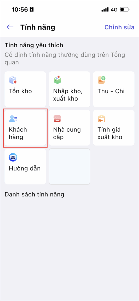 - Tại màn hình tổng quan, chọn tính năng Khách hàng.