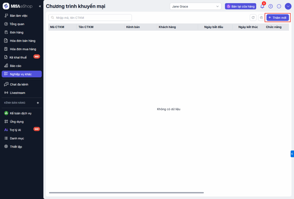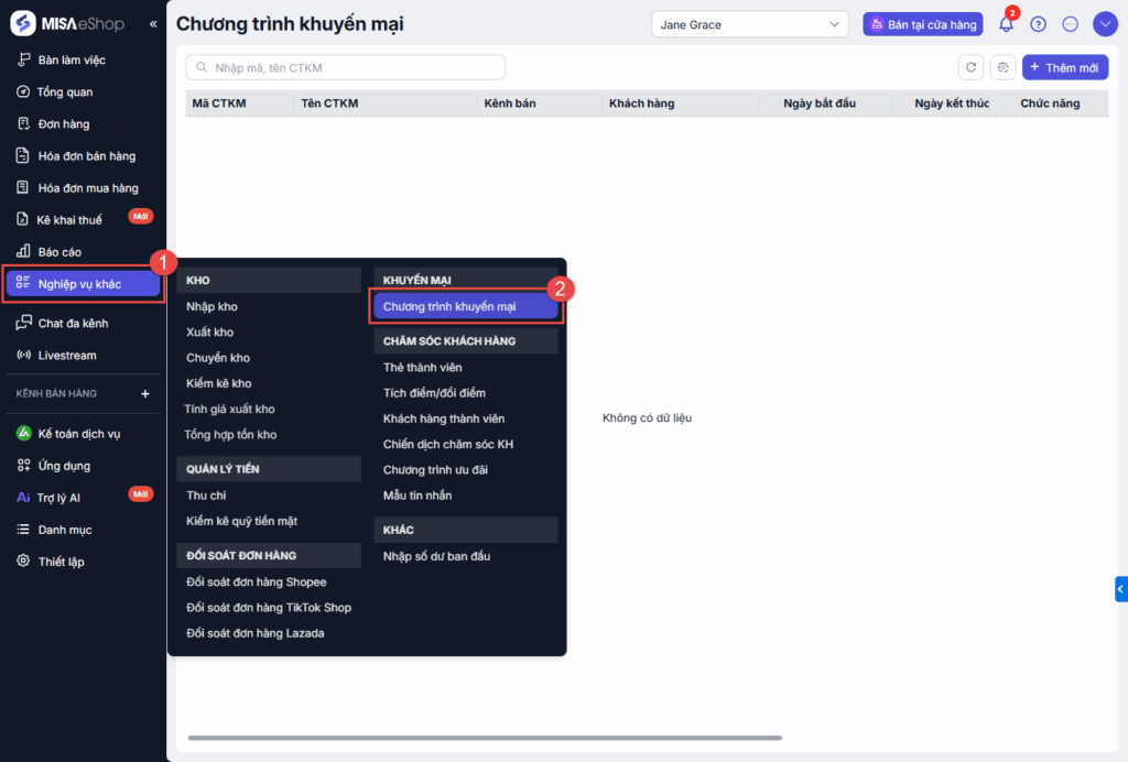 Bước 1: Tại màn hình Tổng quan, chọn Nghiệp vụ khác\Chương trình khuyến mại.