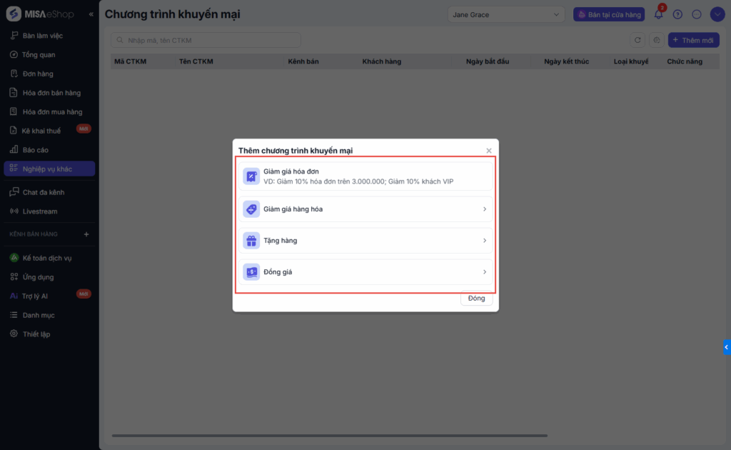 Bước 3: Chọn Loại chương trình khuyến mại.