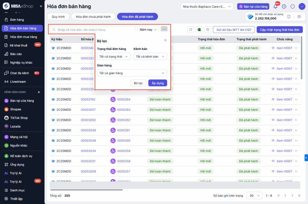 - Nhập tên khách hàng, mã đơn hàng hoặc số hóa đơn để tìm kiếm nhanh hóa đơn.