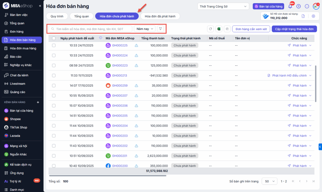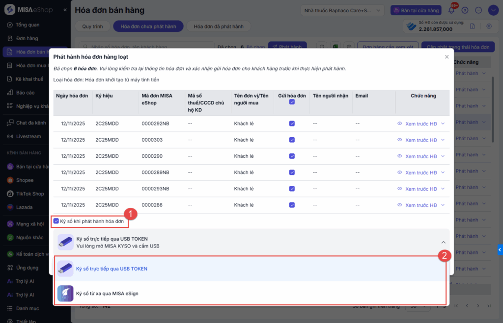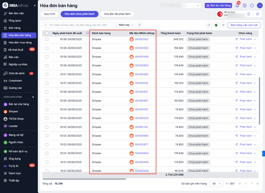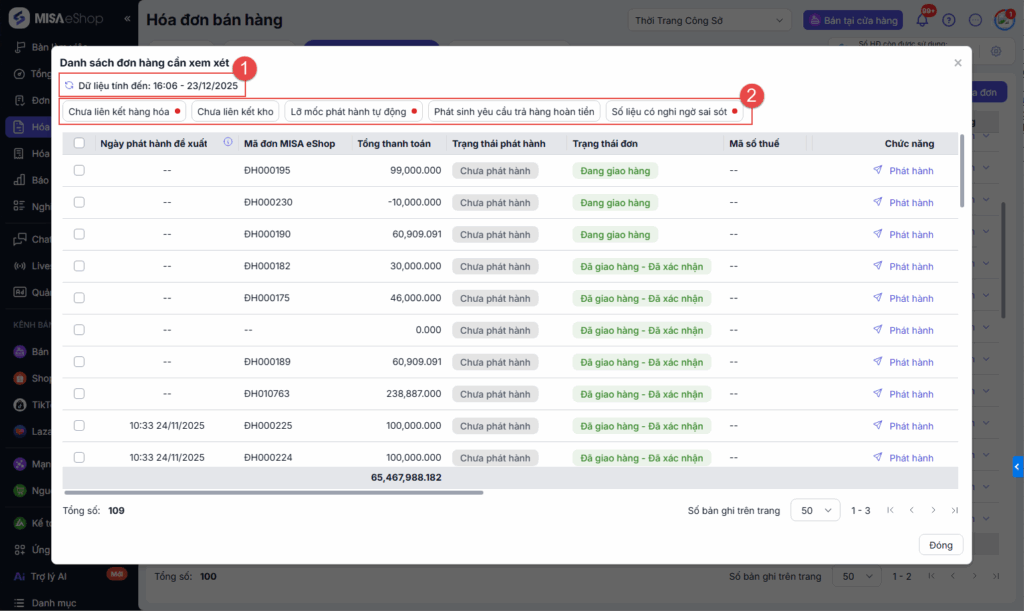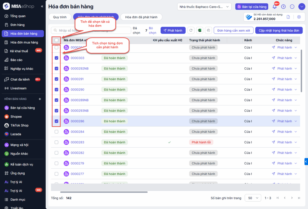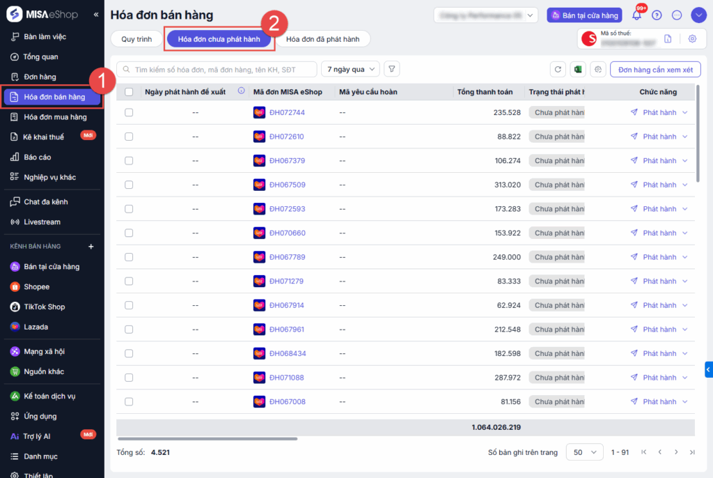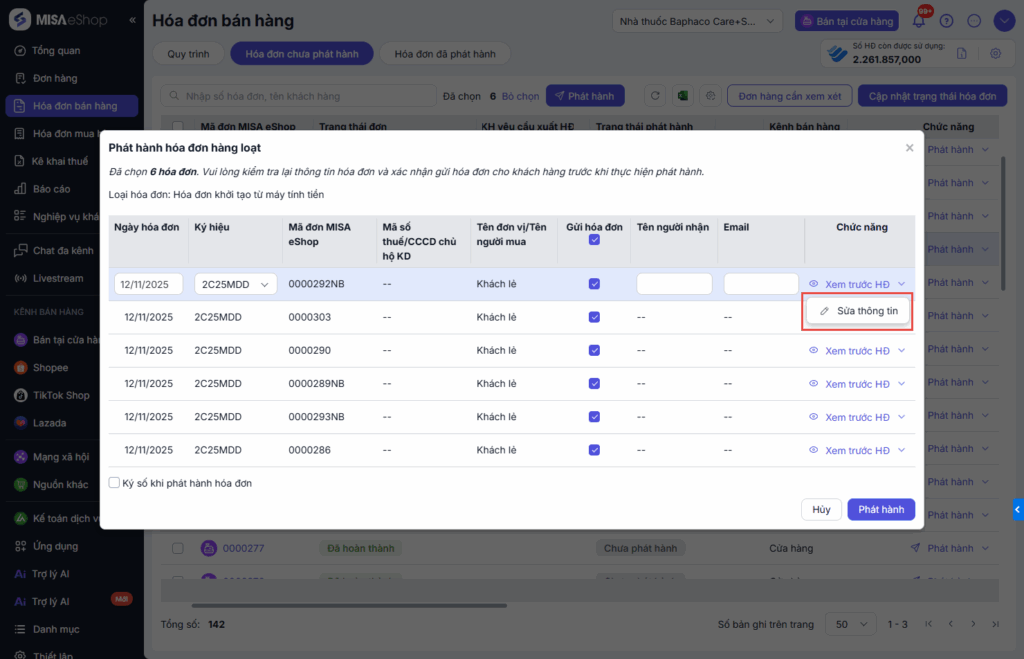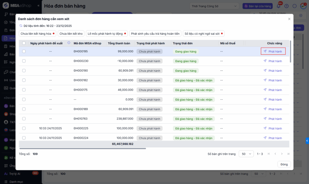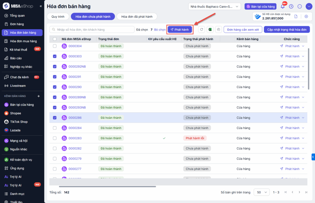 - Nhấn Phát hành để phát hành các hóa đơn cần xem xét