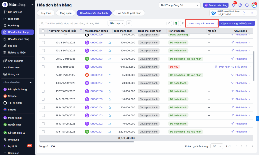 – Nhấn Đơn hàng cần xem xét để kiểm tra các vấn đề từ đơn hàng.