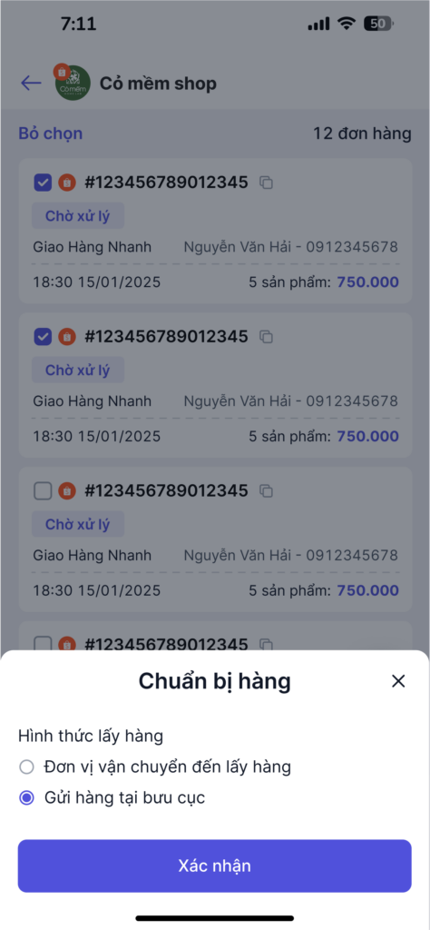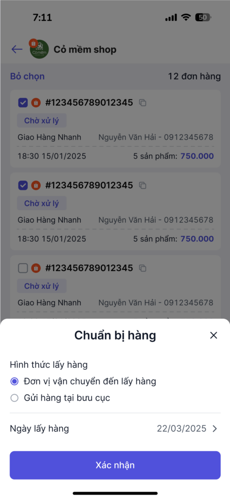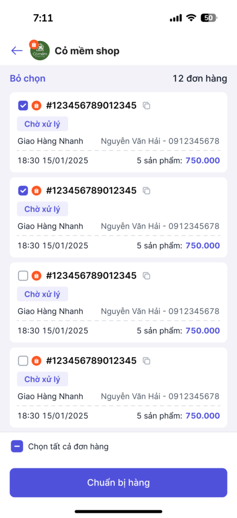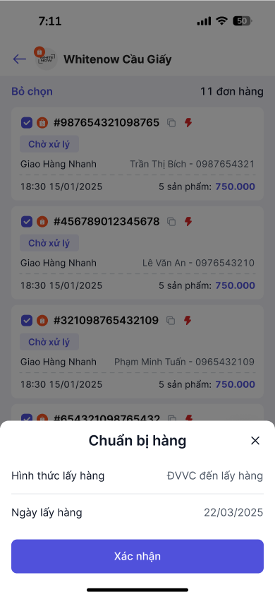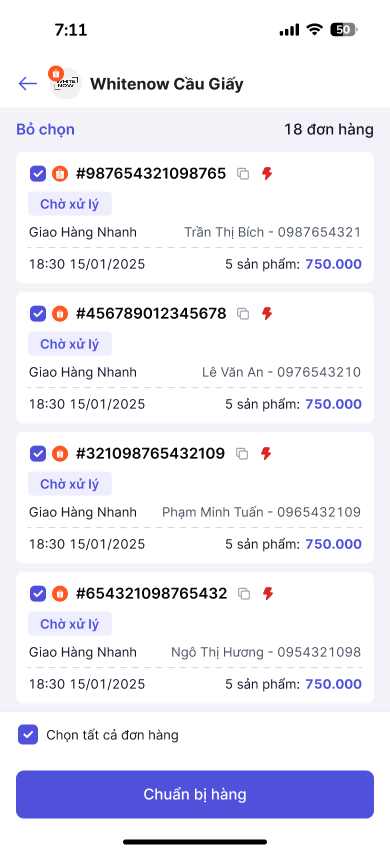 2.3 Chuẩn bị hàng loạt với đơn hỏa tốc