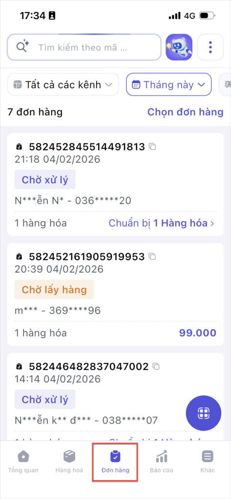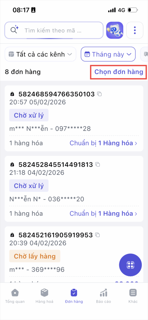 Nhấn Chọn đơn hàng.