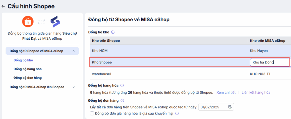 1.4.Đồng bộ dữ liệu từ Misa eshop lên Shopee