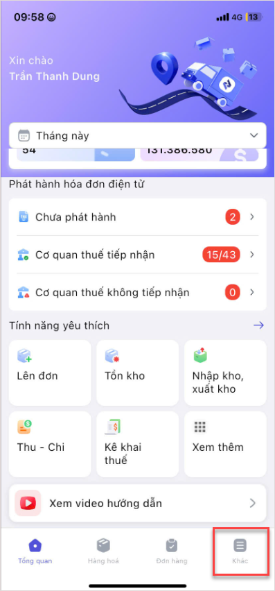 Tại màn hình Tổng quan, nhấn vào tab Khác