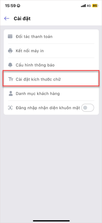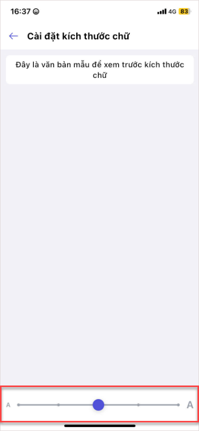 Sau khi điều chỉnh, kích thước chữ trong toàn bộ ứng dụng sẽ thay đổi theo mức đã chọn.