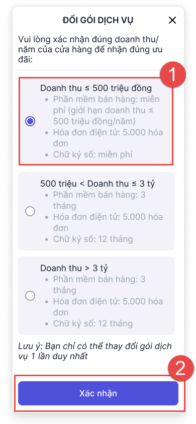 Bước 4: Tích chọn gói doanh thu phù hợp: