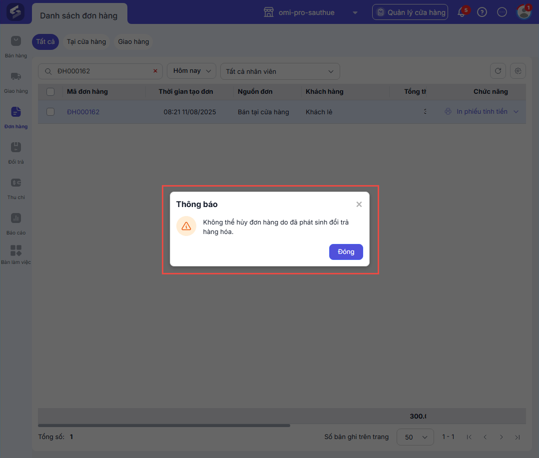 Bài viết hướng dẫn cách Hủy đơn hàng đổi trả và đơn hàng gốc đã phát sinh đổi trả trên phiên bản máy tính.