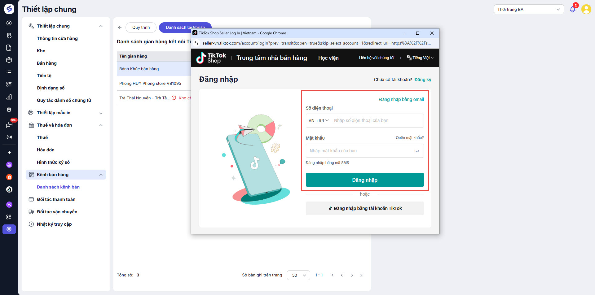 Bước 5. Đăng nhập lại TikTok Shop để xác nhận