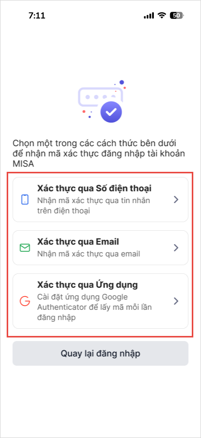 - Nhấn Thử cách khác để chọn phương thức xác thực thuận tiện.