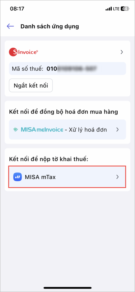 - Trường hợp 2: Chủ động kết nối tại mục ứng dụng