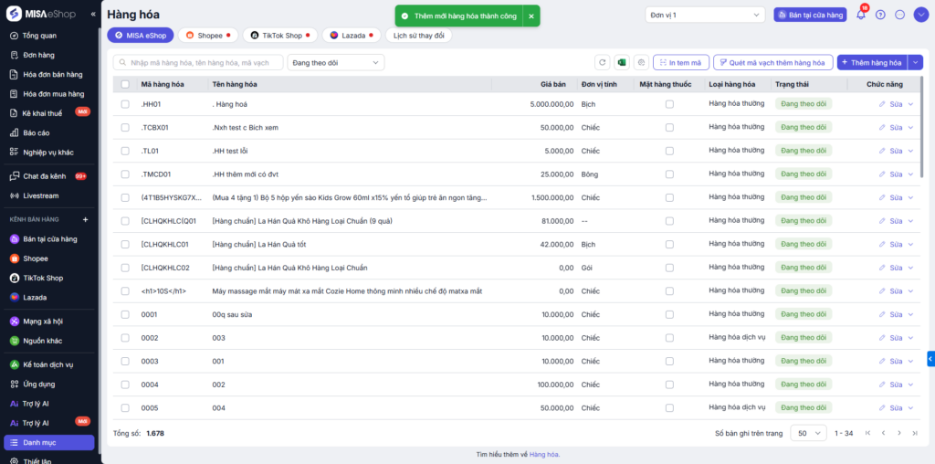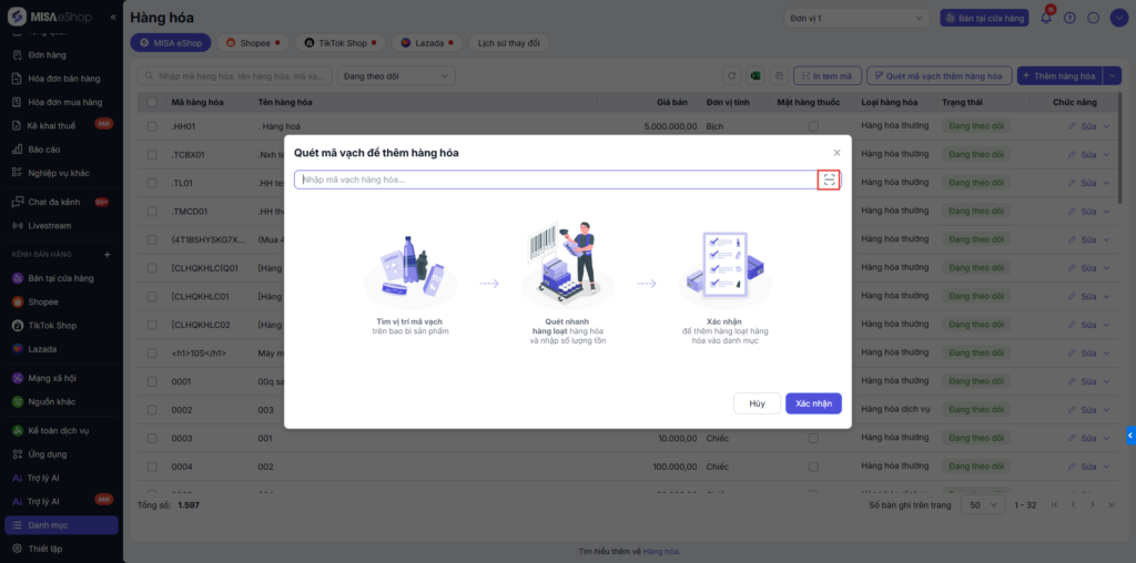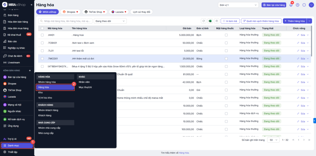 Bước 1. Truy cập danh mục Hàng hóa