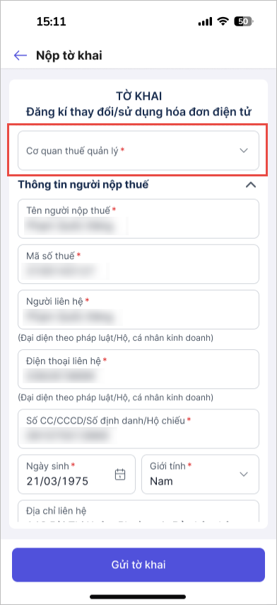• Tích chọn cơ quan thuế khác nếu có thay đổi.