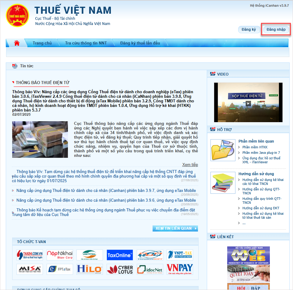 Lưu ý: Từ ngày 01/07/2025, người dùng phải chọn hình thức đăng nhập bằng tài khoản định danh điện tử