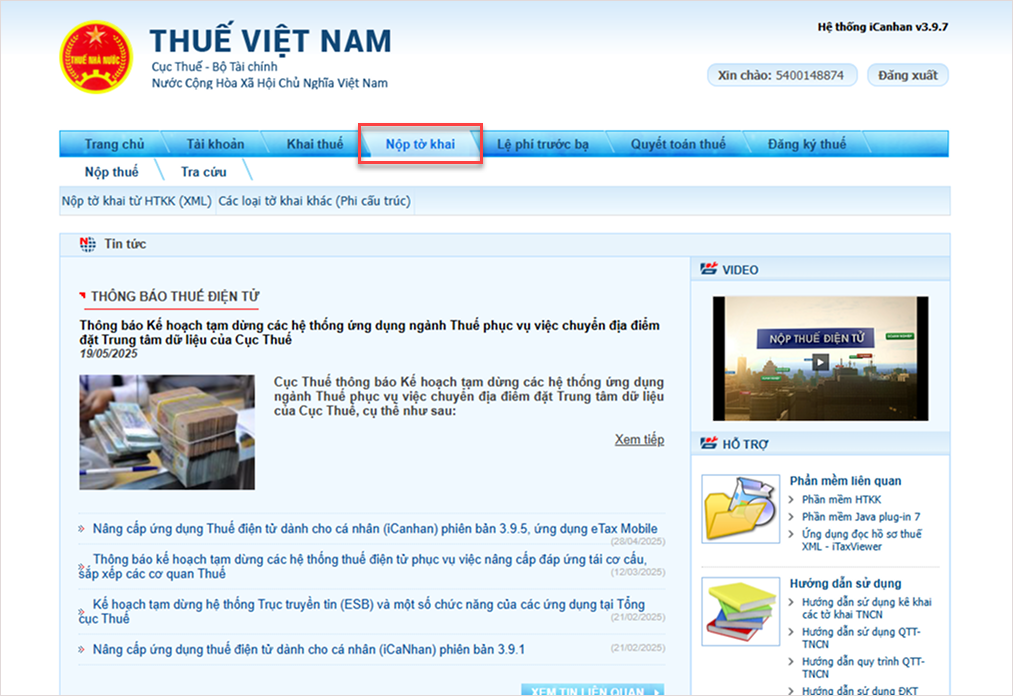 - Sau khi đăng nhập thành công, chọn tab Nộp tờ khai để bắt đầu việc kê khai thuế điện tử hộ kinh doanh.
