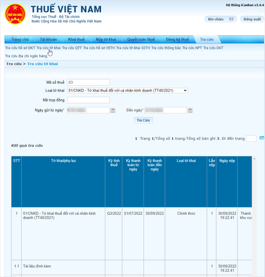 Có thể vào tab Tra cứu để xem lại các tờ khai, phụ lục đã nộp trong kỳ.