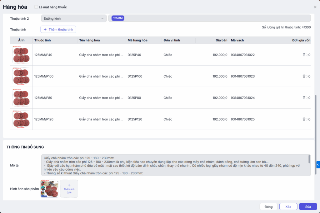 - Hàng hóa có nhiều thuộc tính: hệ thống hiển thị mỗi hàng hóa con thành 1 hàng hóa riêng, không hiển thị hàng hóa cha.