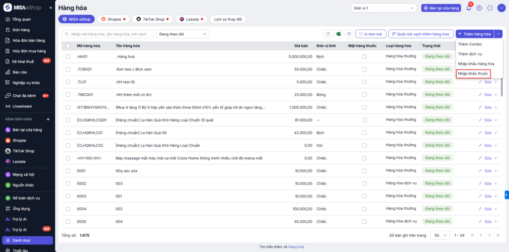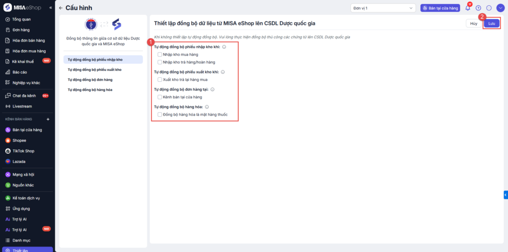 Bài viết hướng dẫn cách kết nối, thiết lập đồng bộ dữ liệu với Cơ sở dữ liệu Dược Quốc gia trên phần mềm MISA eShop, bao gồm các thao tác kết nối, thêm mới hàng hóa là thuốc, nhập khẩu thuốc và thực hiện nhập/xuất kho hàng hóa thuốc.