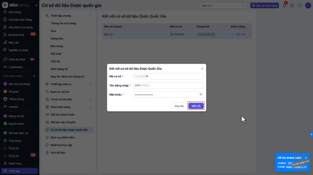 Đăng nhập bằng tài khoản GPP (tài khoản của nhà thuốc đủ điều kiện kinh doanh thuốc). Nhấn Kết nối để hoàn tất.