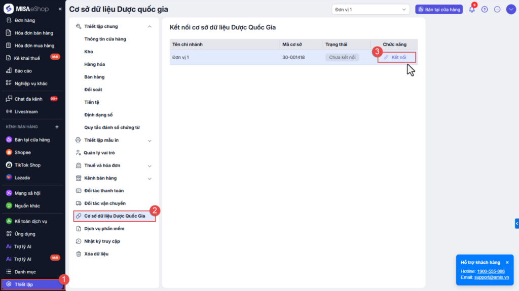 1. Kết nối và thiết lập đồng bộ dữ liệu lên cổng Dược Quốc gia