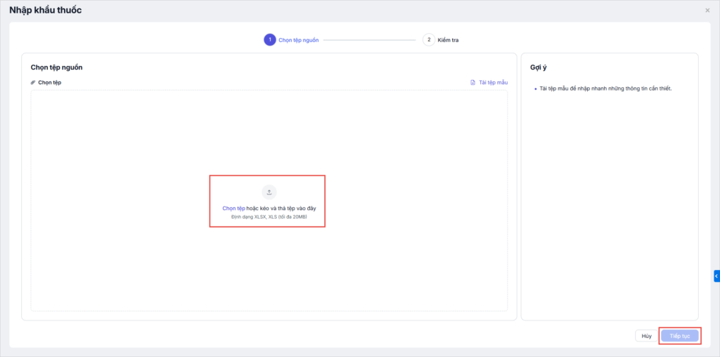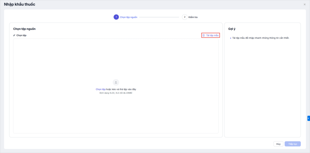 Bước 2. Tải tệp mẫu và điền thông tin thuốc