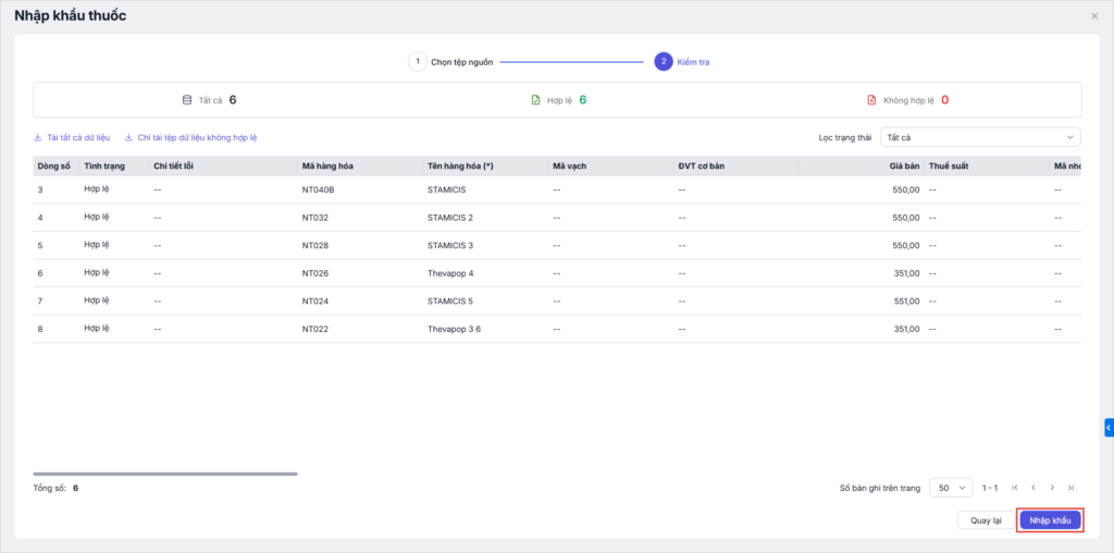 - Sau khi hợp lệ, nhấn Nhập khẩu để hoàn tất.