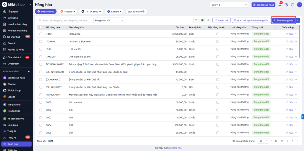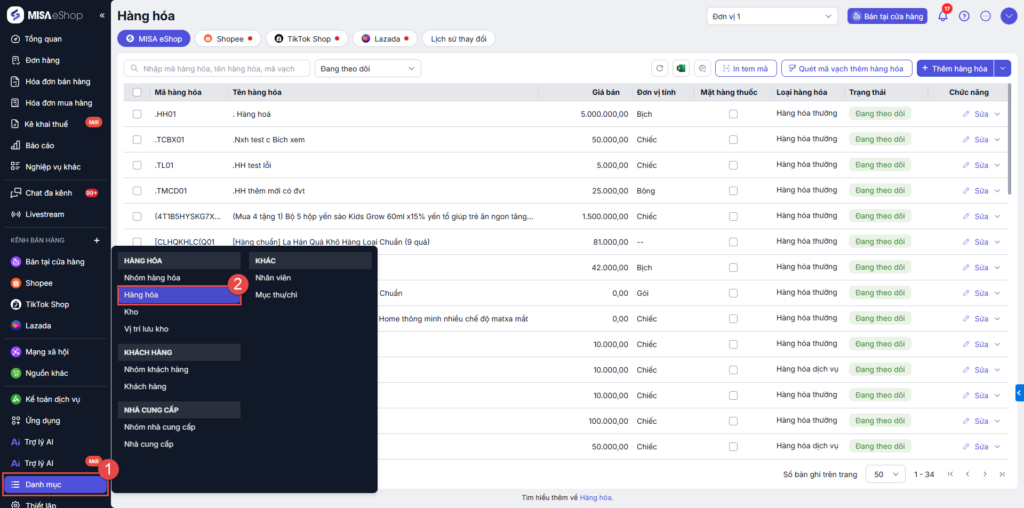 Bước 1. Truy cập danh mục hàng hóa