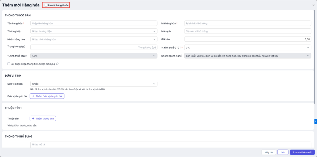 2. Thêm mới hàng hóa thuốc