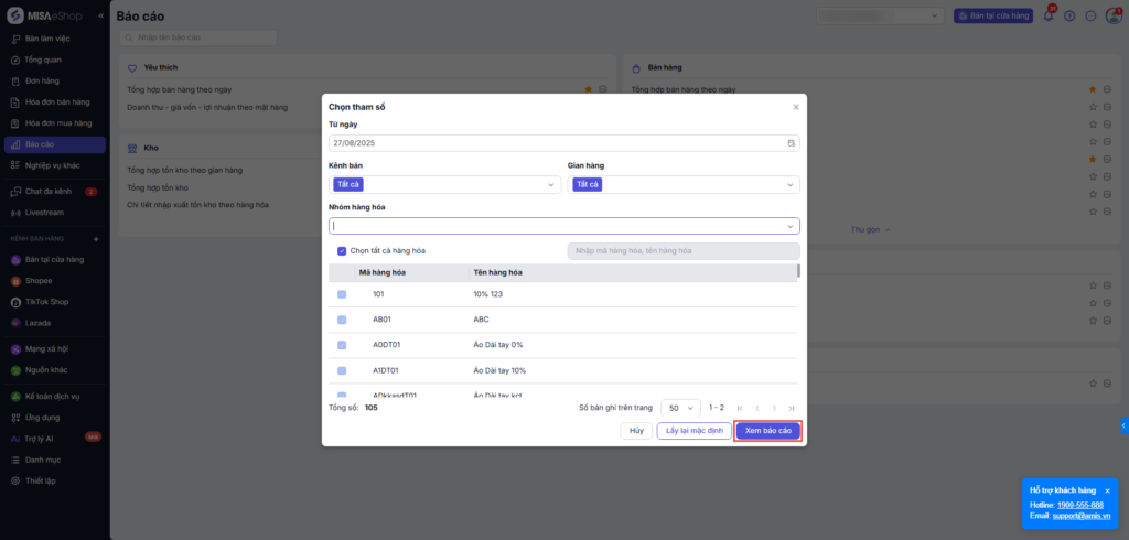 Bước 3: Xem và xuất file báo cáo