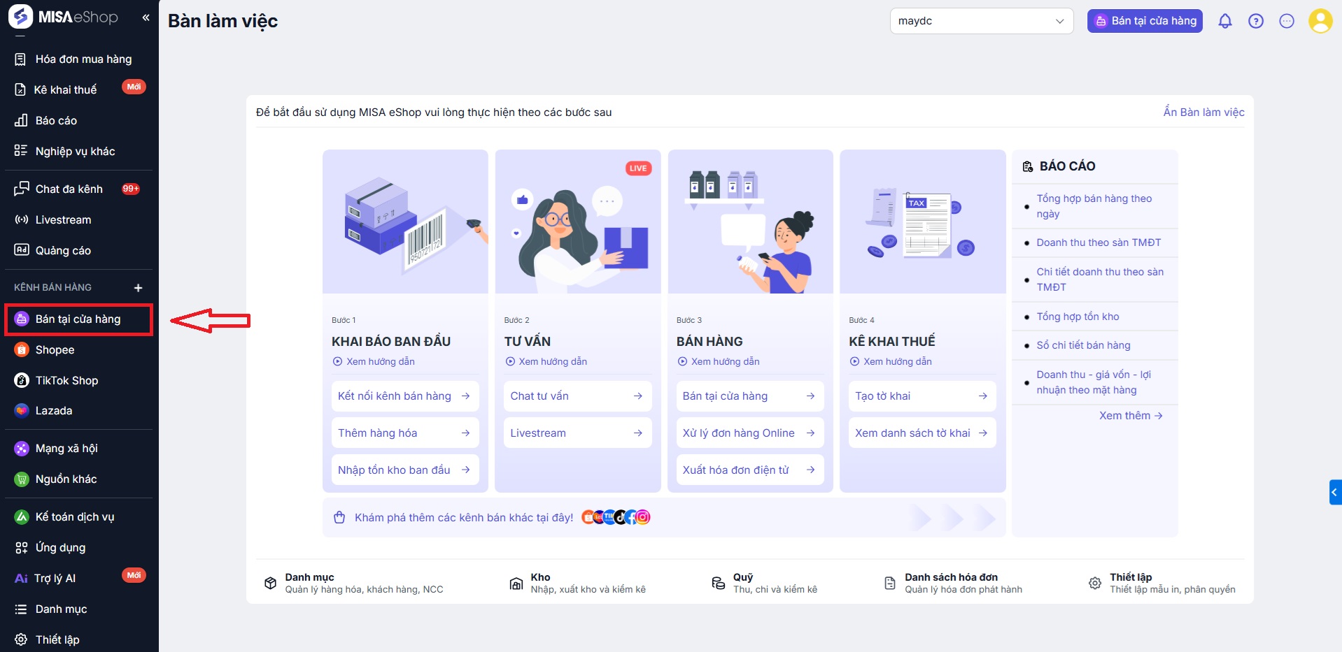 Bước 1: Chọn Kênh: Bán tại cửa hàng.