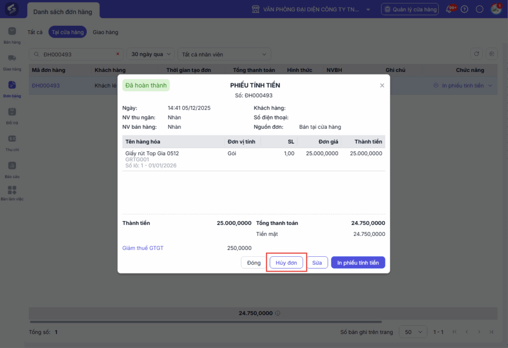 Tài liệu này hướng dẫn chi tiết cách hủy đơn bán tại cửa hàng trên máy tính khi chưa phát hành hóa đơn điện tử. Hướng dẫn áp dụng cho các tình huống thao tác trực tiếp trên giao diện POS, giúp người dùng thực hiện nhanh chóng, chính xác.