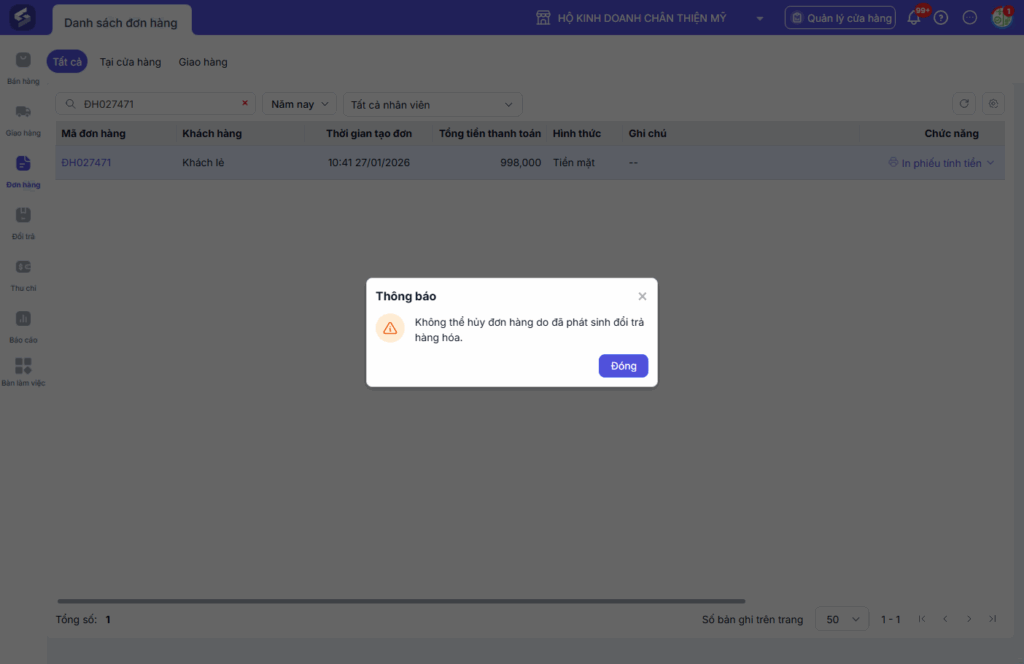 - Hệ thống sẽ không hủy các đơn hàng gốc đã phát sinh đơn hàng đổi trả.