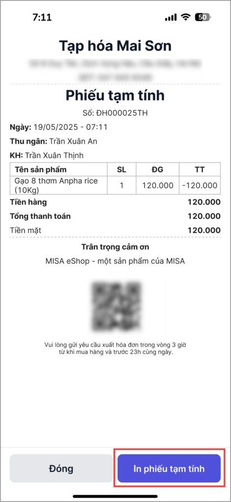 - Tính năng In phiếu tạm tính cần được bật trong phần thiết lập trên phiên bản máy tính. Xem hướng dẫn chi tiết tại đây.