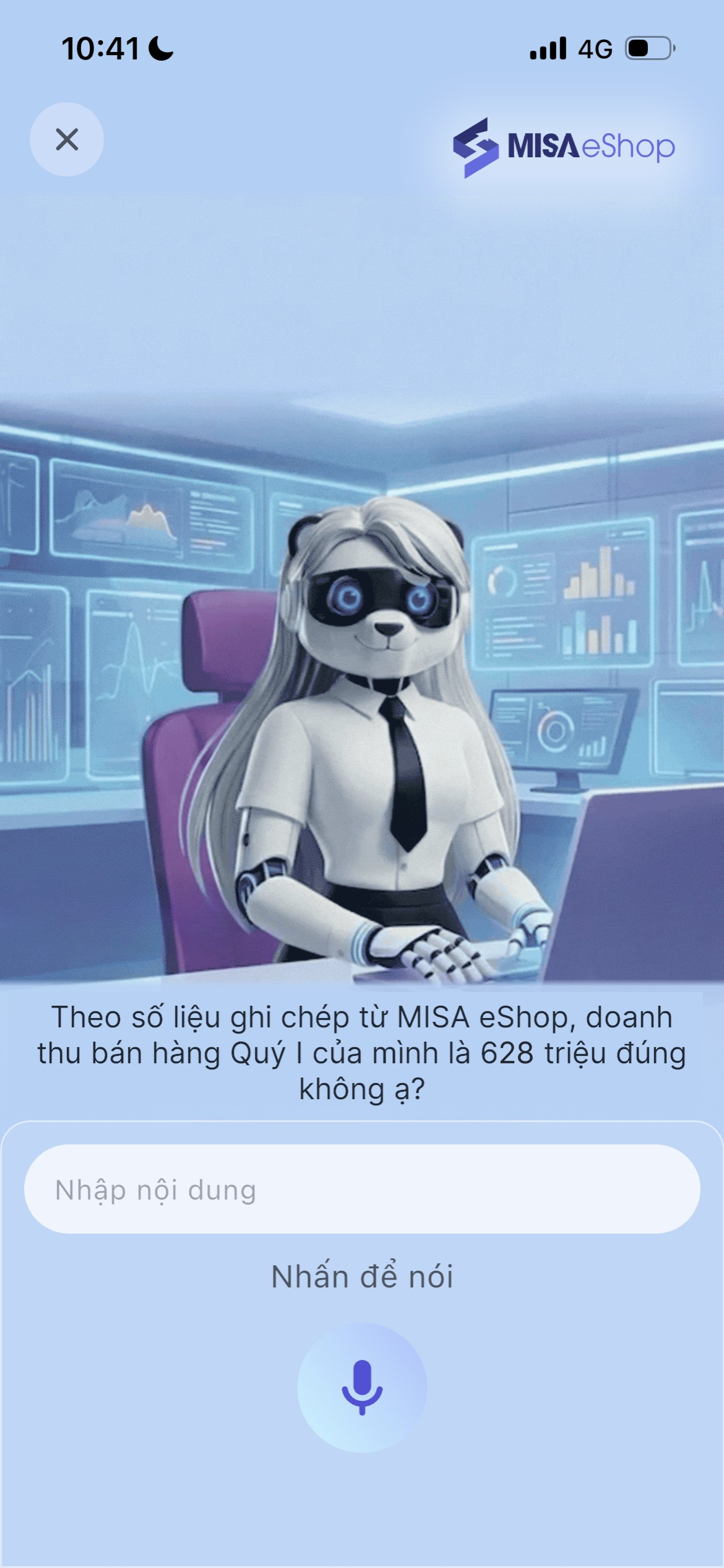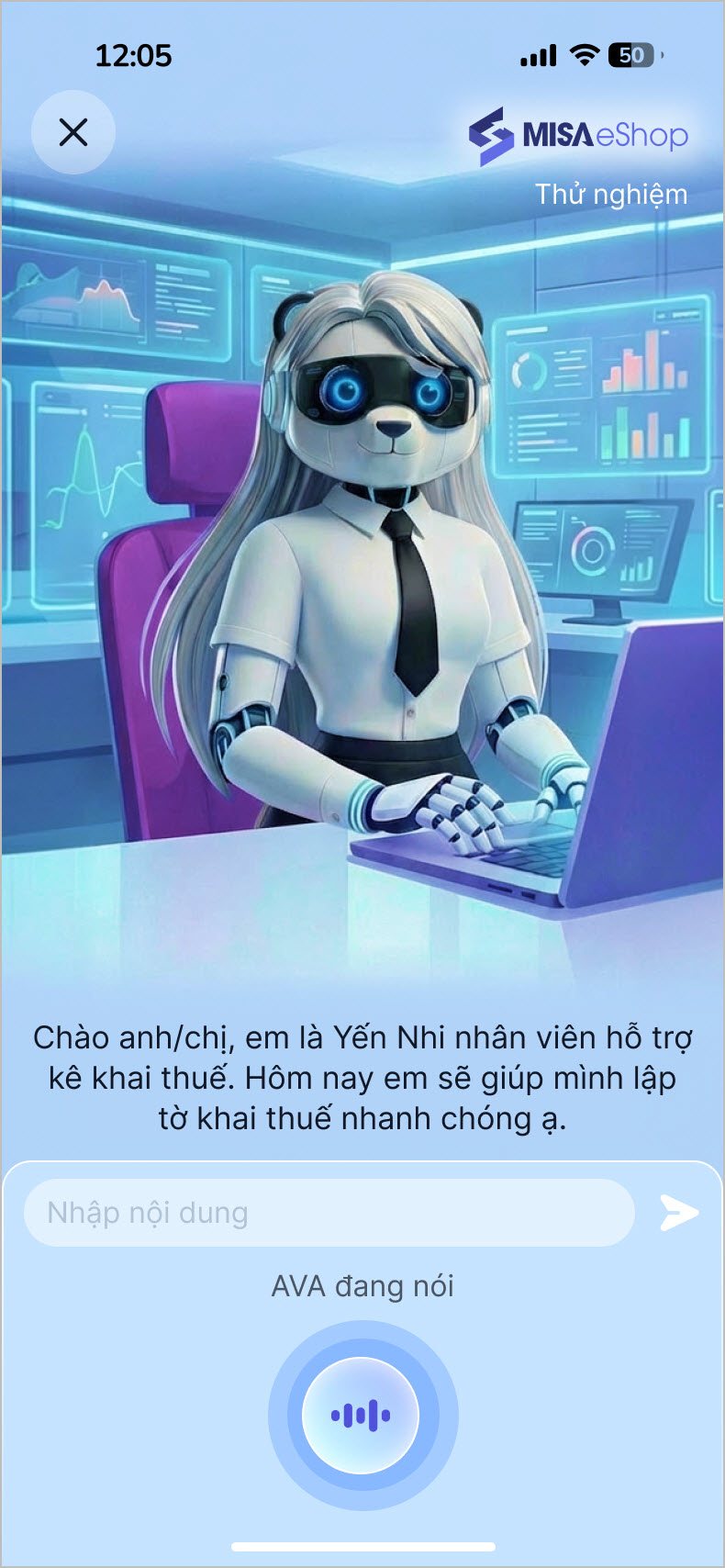 Bước 2: Nhấn biểu tượng trợ lý MISA AVA để bắt đầu sử dụng tính năng
