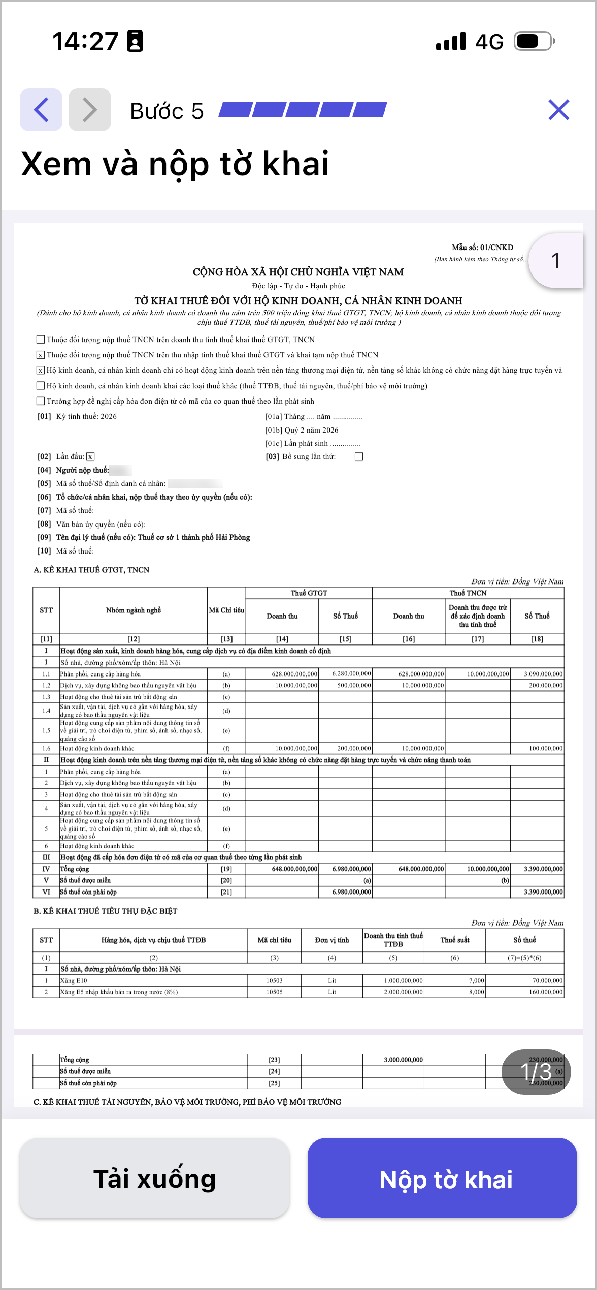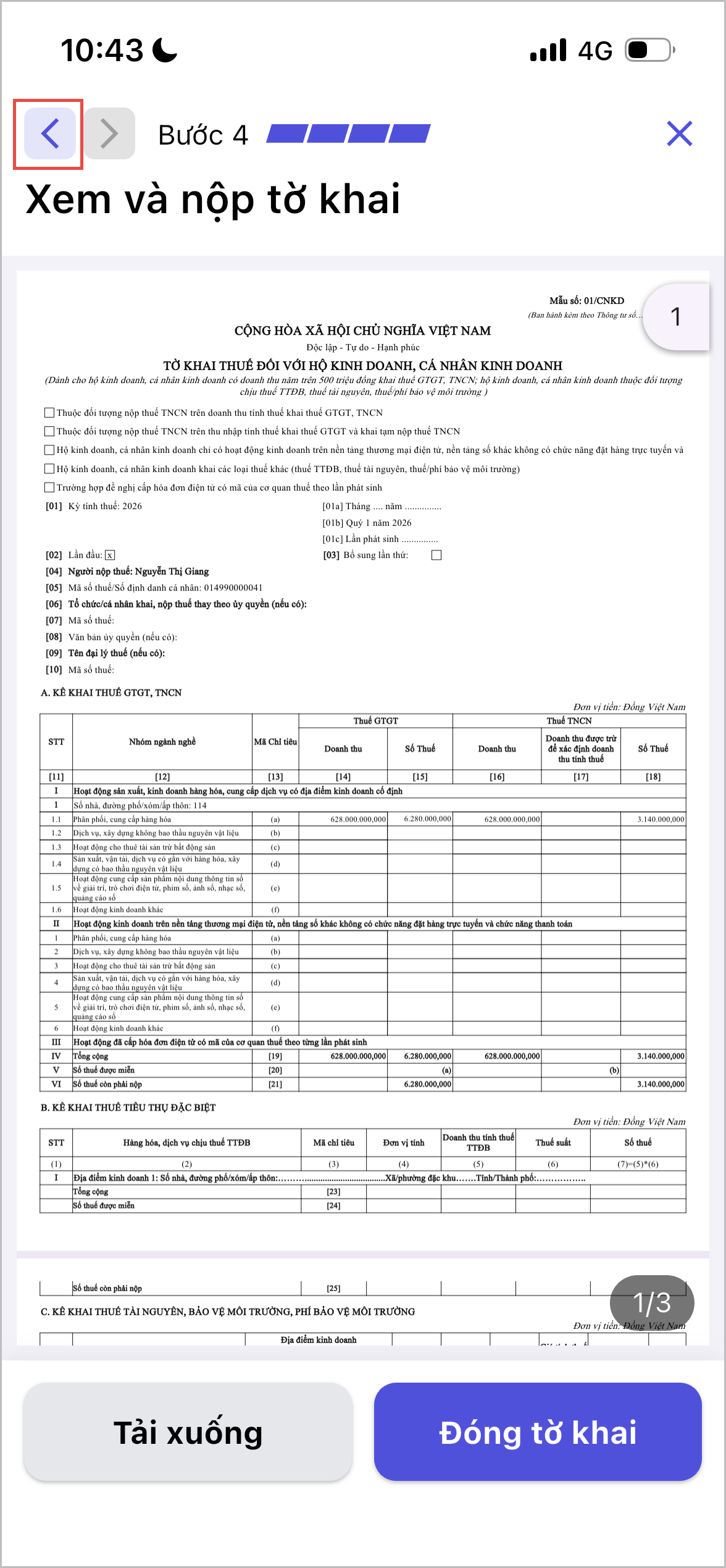 3.4 Kê khai Doanh thu chịu thuế