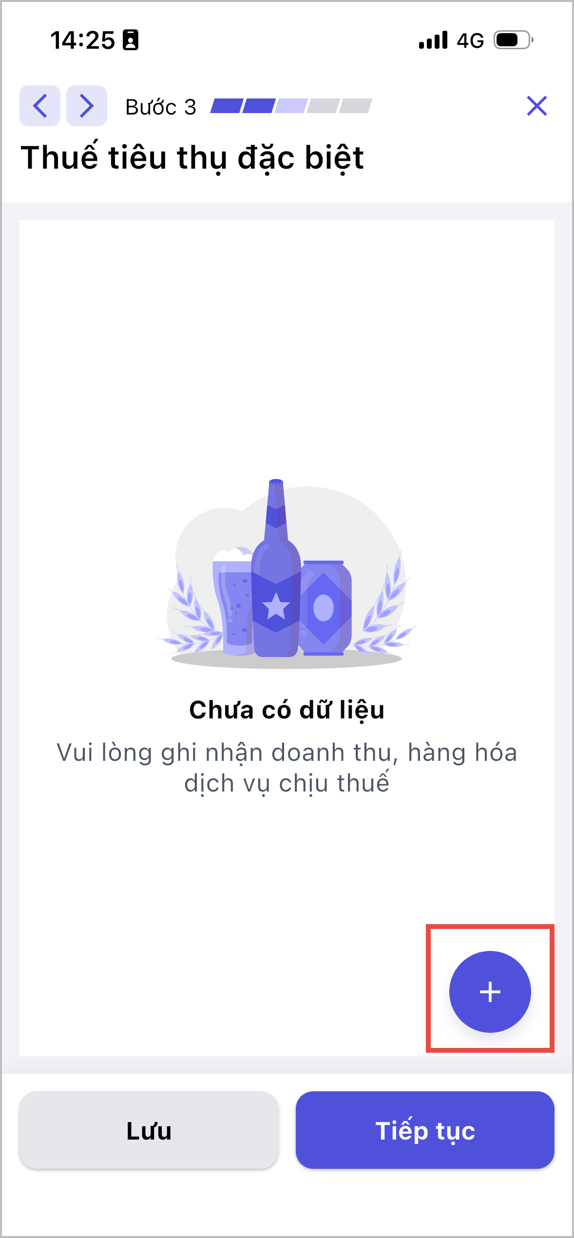 - Tại bước 3 khai thuế tiêu thụ đặc biệt, người dùng tự khai báo lần lượt dữ liệu các hàng hóa và doanh thu từ các hàng hóa đó.
