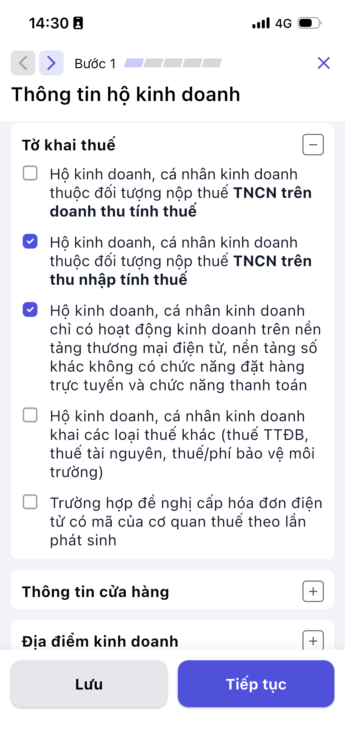 - Nếu tích chọn mục này nhưng có địa điểm kinh doanh cố định (Thể hiện ở bước 2 trong tờ khai), hệ thống vẫn sẽ lấy lên dữ liệu cả 2 và có cho phép sửa.