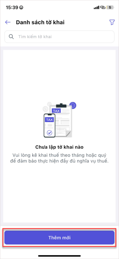 - Trường hợp chưa từng nộp tờ khai → Chọn Thêm mới.