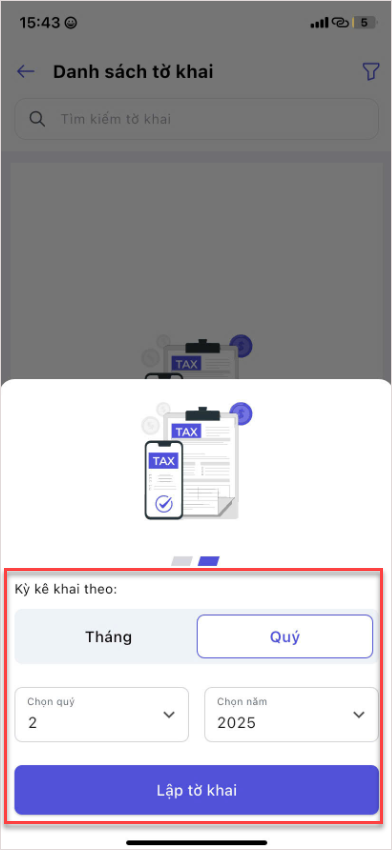Bước 2: Chọn kỳ tính thuế và lập tờ khai